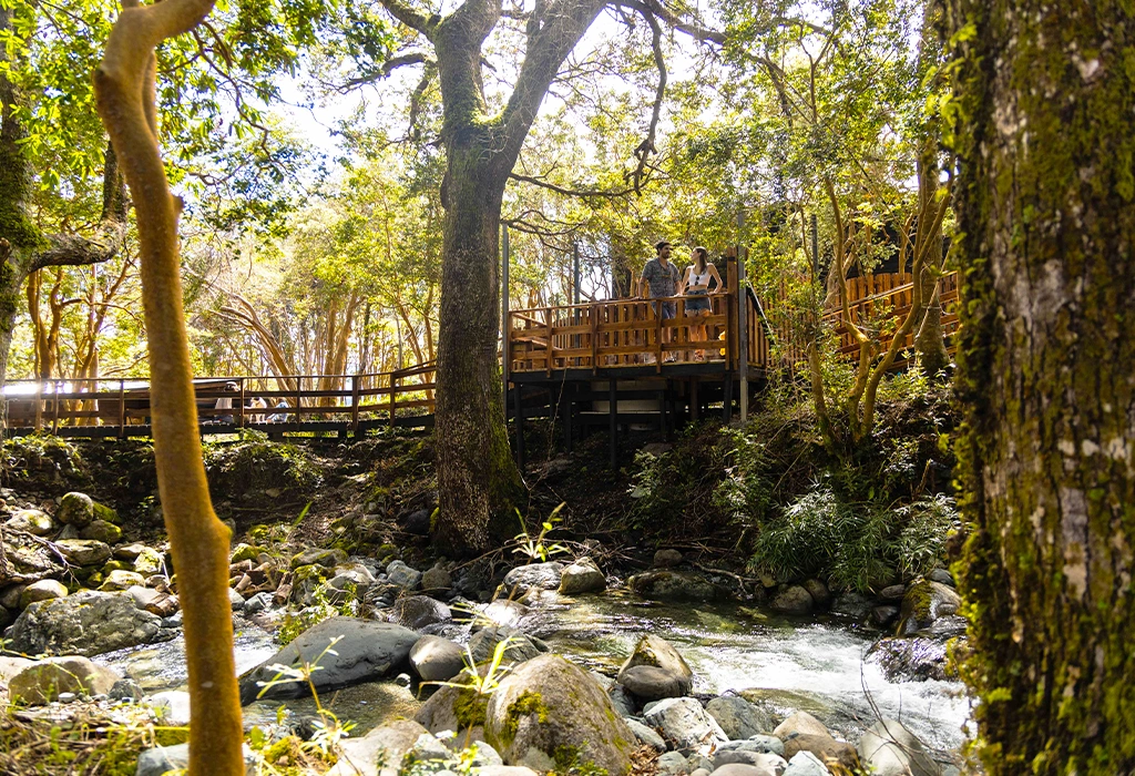 Disfruta de 5 piscinas de agua termal al aire libre y 9 tinajas privadas junto al río, rodeadas de un bosque de arrayanes que hacen de cada visita un momento único.