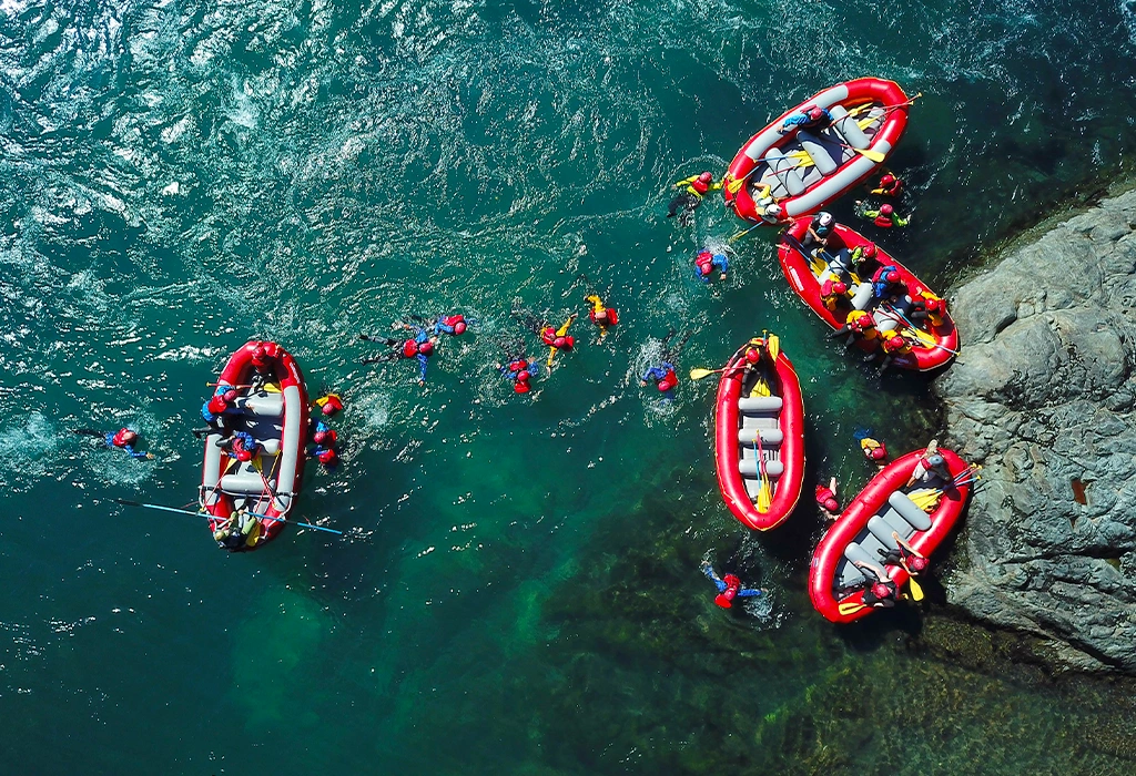La actividad comienza en “La Base” en Ensenada, donde los guías entregan el equipo para el río, junto con las instrucciones y una charla de seguridad. Desde allí, nos dirigimos al río Petrohué, donde los guías dividen a los grupos y dan las instrucciones finales antes de iniciar el descenso.